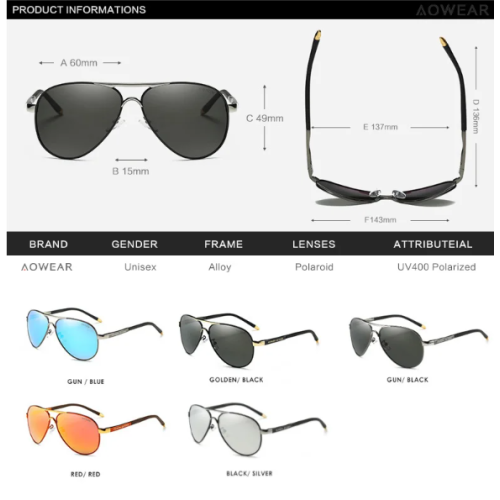 AOWEAR anteojos de sol tipo aviador polarizados con protección UV AP8503