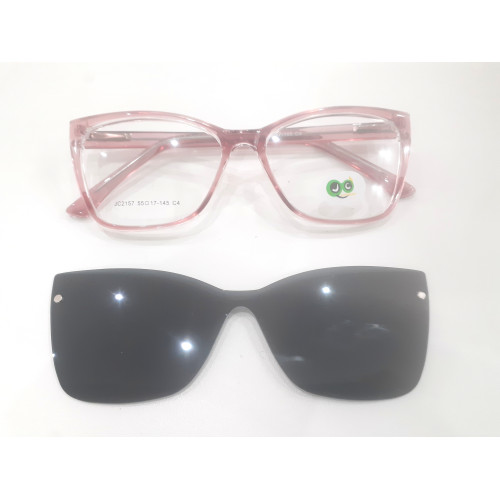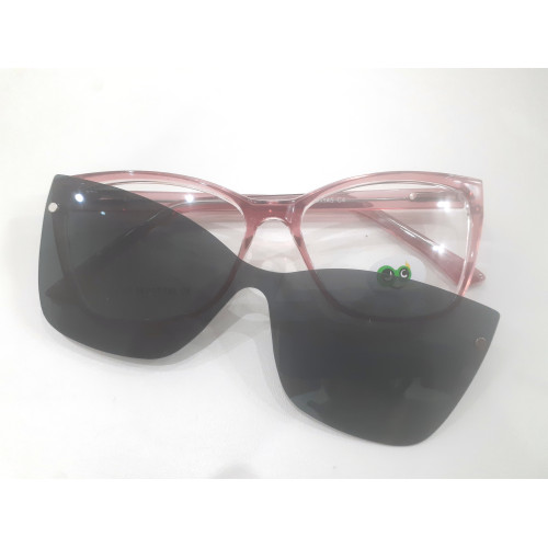 Marco con clip - on, ideal para anteojo de receta y de sol. Exclusivamente para dama.