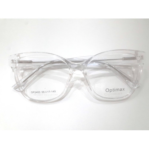 Marco de acetato Optimax para dama modelo OP2408.Color transparente.con patillas flexibles.Medidas 5..