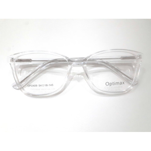 Marco de acetato Optimax para dama modelo OP2408.Color transparente.con patillas flexibles.Medidas 5..